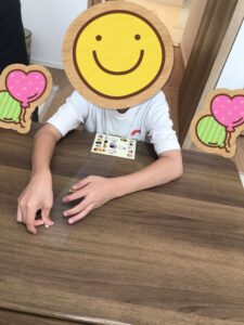 「先生どうやったらいいか分からない…」、「これで合ってるかな?」と職員に質問しながら、貼り終えることが出来ました。