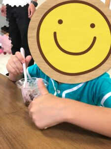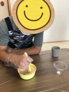 初めにフルーチェの元と牛乳を混ぜ合わせていきました。こぼれないように混ぜるスピードに気を付けながら、スムーズに混ぜ合わせることが出来ました😊