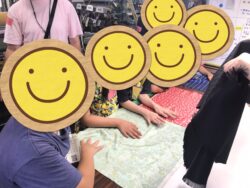 「この模様は何という模様でしょう?」という施設の方の質問に対し、生徒さんの中には「献上柄です!学校の授業で習いました!」と自信をもって答える姿が見られ、施設の方から「よく知ってるね~!」と感心される一幕もあり、私たち職員も驚かされました。