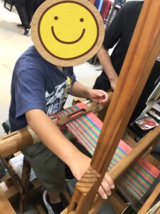 生徒さんたちは、自分で手織り機を動かして模様を作る体験ができることに大喜びの様子でした😊