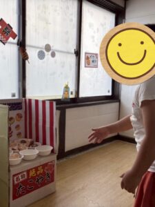 「意外と難しい!💦」「ビンゴできた✨」とよく狙ってたこ焼きを投げることができていました😊