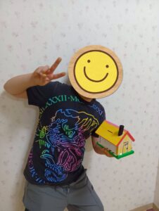 「屋根は何色にしようかな?」、「壁はこの色にする!」、「表も裏も色を塗っちゃおう。」と、みんな真剣に楽しみながら取り組んでいました😊