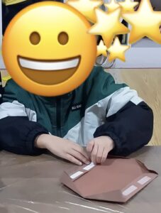初めに、茶色の画用紙を折れ線に沿って折っていきます😊